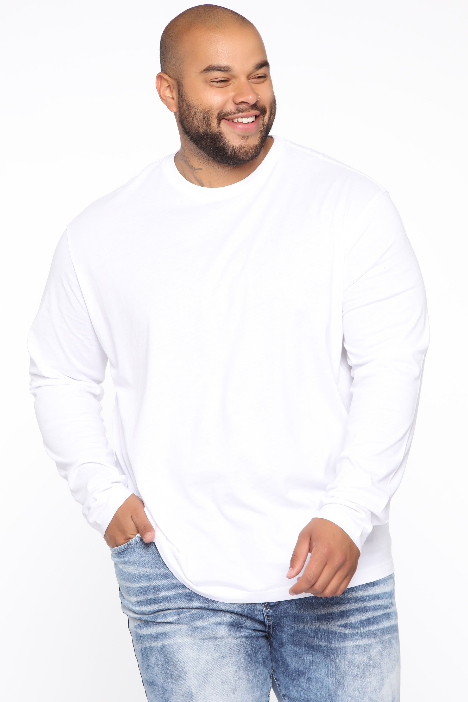 Essential Long Sleeve Crew Tee - White
